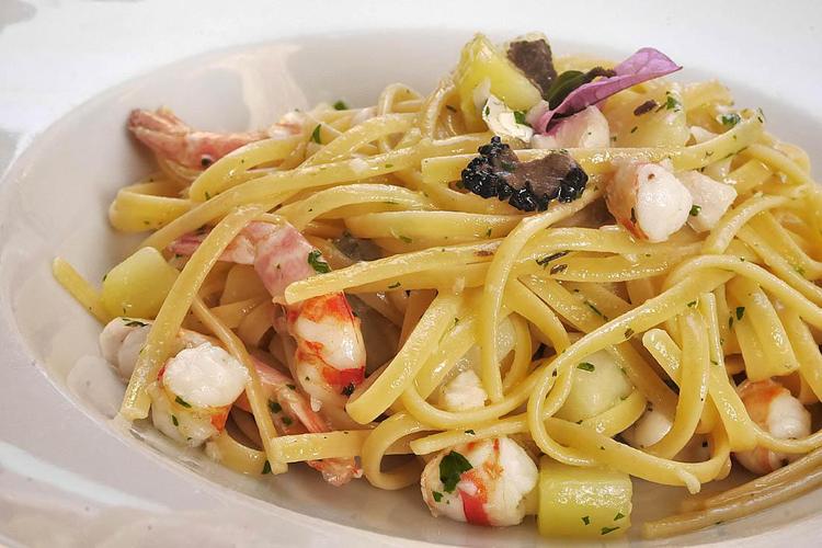 Gustosi piatti di mare con primi a base di pasta fresca come tortelli o tagliolini con pesce spada e cozze, secondi di pesce molto apprezzati come polpo con verdure, spiedini di pesce, e tagliata di tonno. Molto buoni i dolci. Ottimo rapporto qualità prezzo.